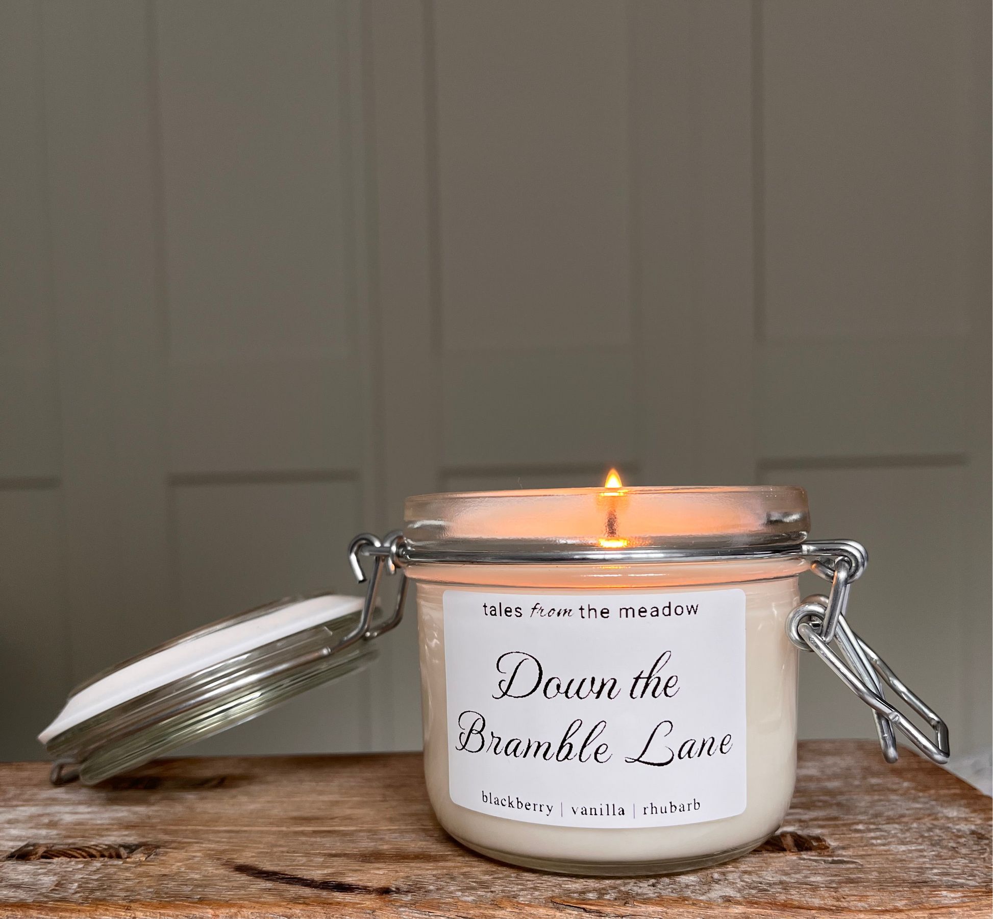 Blending notes of ripe red berries, rhubarb, creamy vanilla, and a hint of malted custard, Down the Bramble Lane is nostalgic, joyful, and full of cosy charm — a countryside dessert in candle form.