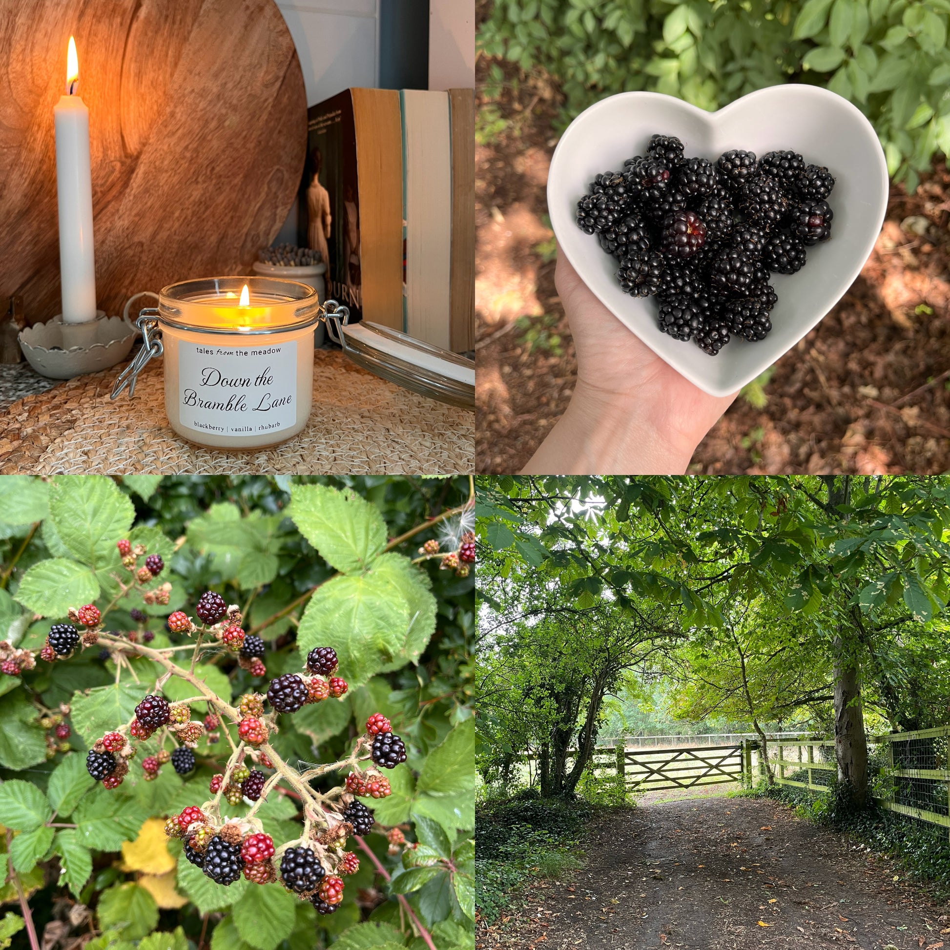 Follow the winding lane where the hedgerows are heavy with wild fruit and summer still lingers in the air. This candle is a soft, sweet echo of blackberry-picking afternoons and countryside kitchens, where bowls of warm custard meet sticky jam jars and crumbles cool on windowsills.